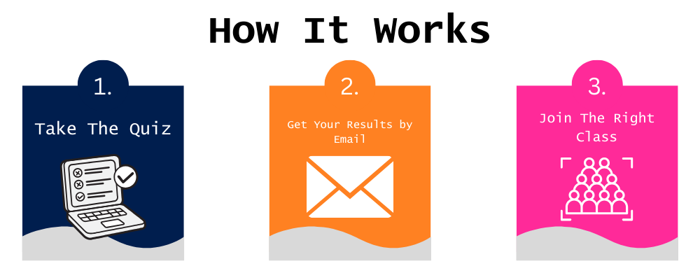Signing up to take our placement quiz does not secure your enrollment in future classes.